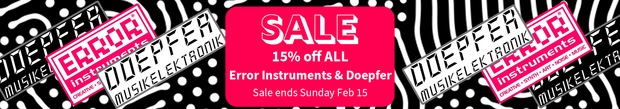 Error Instruments Shop Sale -15% Quickshop Error Instruments/TINRS - Bubbles$187.00 $220.00 2 in stock Sale -15% Quickshop Error Instruments - Mantra$89.25 $105.00 2 in stock Sale -15% Quickshop Error Instruments - Flowerfield Plant Drone$148.75 $175.00 3 in stock Sale -15% Quickshop Error Instruments - Solar Installation$424.15 $499.00 3 in stock Sale -15% Quickshop Error Instruments - The Ritual$211.65 $249.00 4 in stock Sale -15% Quickshop Error Instruments - White Rabbit$187.00 $220.00 2 in stock Shop All Error