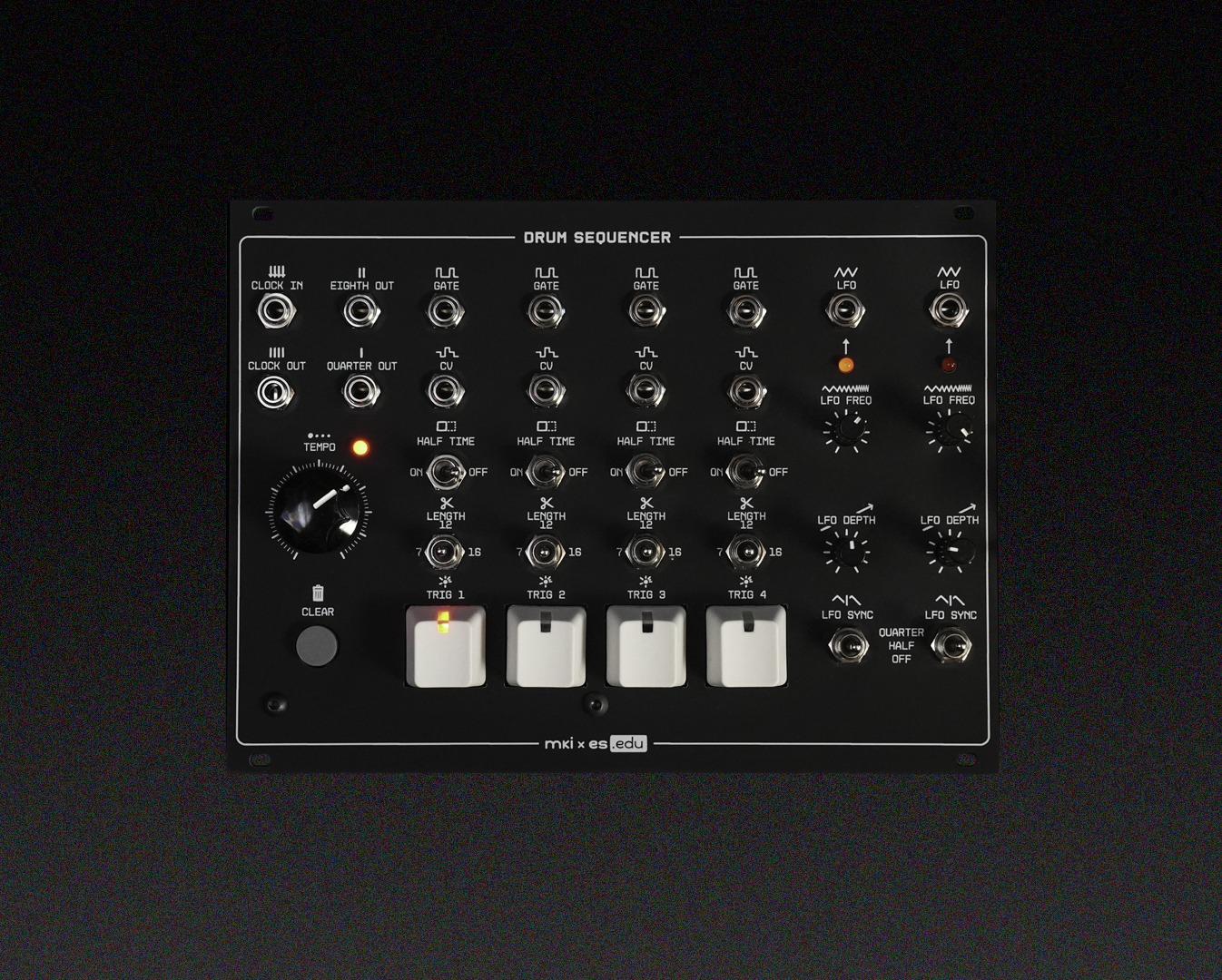 Most drum sequencers are complex machines – packed with buttons and LEDs, all driven by a microcontroller. For the mki x es.edu DIY Drum Sequencer kit, we decided to take the opposite approach: a hands-on rhythm engine with a minimalist interface, built from just a handful of logic chips. Each of the sequencer’s four channels is programmed in real time using a single button. Patterns loop automatically, can be shortened on the fly, and support half-time playback for slower, evolving grooves. Accents are handled using synced LFOs, while a simple resistor-DAC turns patterns into stepped control voltages – perfect for modulating pitch, decay, or other parameters. Whether you’re looking to learn about sequencer design, sharpen your soldering skills, or just want a drum sequencer that plays like an instrument, this DIY kit packs surprising depth into a refreshingly simple interface.