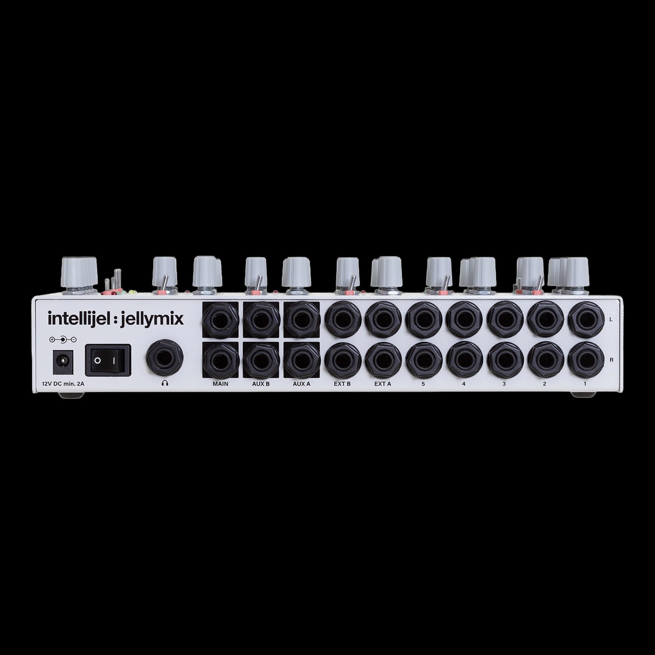 The Intellijel Jellymix is a five-channel analog performance mixer that is designed to be the perfect mixer for electronic musicians in both studio and on stage. Created with hardware synths, drum machines, modular synths, and other electronic oddities in mind, Jellymix excels at creating an effortless harmony amongst your devices with complete control just a twiddle away. Each of the five channels has two stereo AUX sends that can be pre or post volume, a gain control with +26dB of gain, Tilt EQ, and routing switches. Channel one has a Hi-Z switch that makes it perfect for guitars and basses.