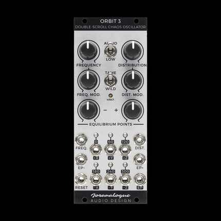 Orbit 3 is Jornalogue's modular ode to chaos, in the true mathematical sense of the word, being a voltage-controlled oscillator and LFO presenting irregular yet periodic movement. Not just producing total randomness, chaos theory is deterministic and yields recognizable patterns, which has strong performative implications in the world of Eurorack synthesizers.