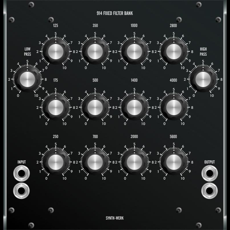 Product formSynth-Werk Synth-Werk - SW914 Fixed Filter Bank Similar in function to the Moog 907 Fixed Filter Bank, the SW914 Extended Range Fixed Filter Bank is a non-voltage... Read more Read more $2,765.00Excl. VAT Add to cart This item is a recurring or deferred purchase. By continuing, I agree to the cancellation policy and authorize you to charge my payment method at the prices, frequency and dates listed on this page until my order is fulfilled or I cancel, if permitted. Share with your friends Share WhatsApp Deel Tweet Pin it Messenger Email
