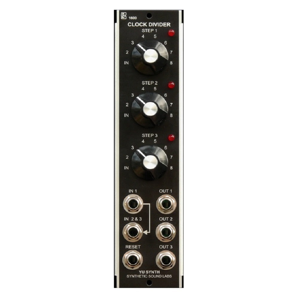 The three dividers can be clocked by the same clock signal on input IN #1, but a different master clock can be used for the second and third dividers by plugging it in the input IN #2 & 3.