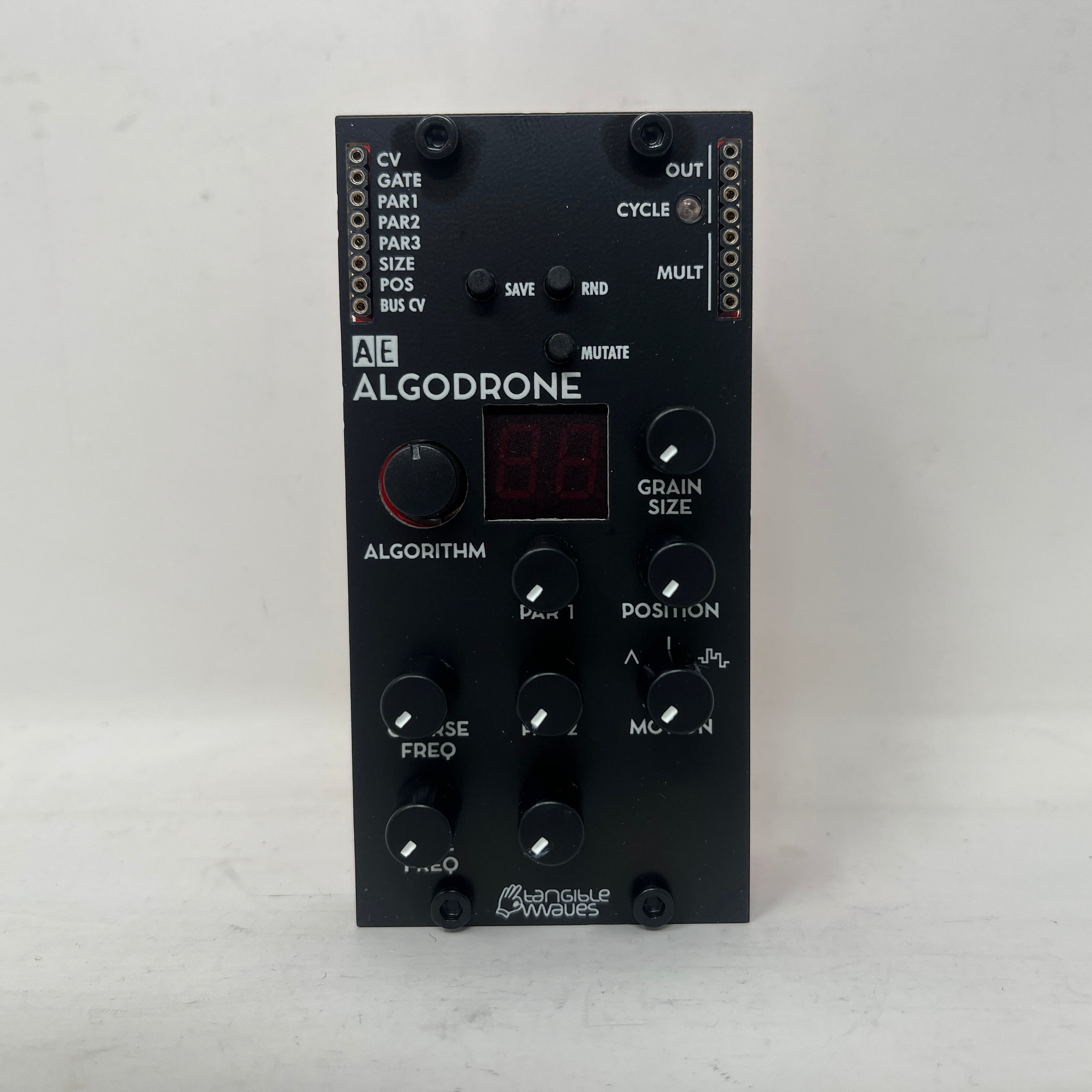 The ALGODRONE module contains a number of these algorithms plus three parameter knobs that change values within the current algorithm. These changes vary from subtle to dramatic, even with small changes, depending on the algorithm and the setting of the other parameters.